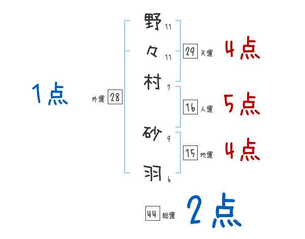 野々村砂羽さんの画数の鑑定結果