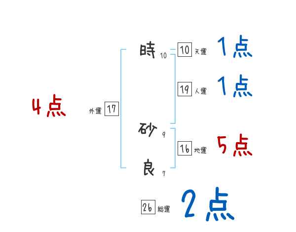 天運![]() | 時砂良さんの天運は10画の1つ星!不安を感じやすい傾向。ストレスを抱えないように注意しましょう。 家系が持つ宿命的な運勢を表します。祖先から受け継いだ苗字ですので自分の力が及びません。家柄を象徴します。 |