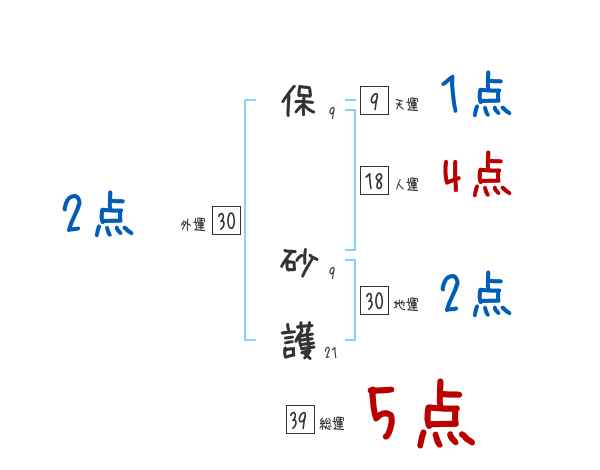 保砂護さんの画数の鑑定結果