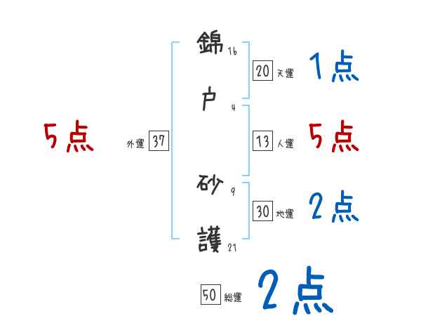 錦戸砂護さんの画数の鑑定結果