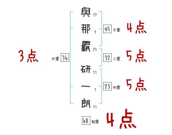 與那覇研一朗さんの画数の鑑定結果