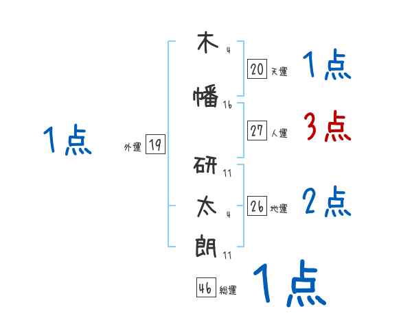 木幡研太朗さんの画数の鑑定結果