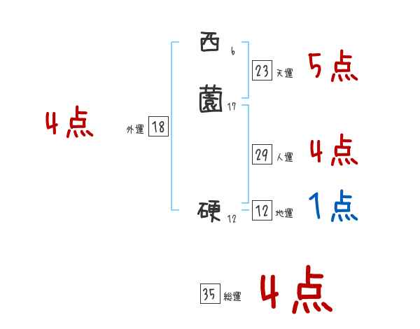 西薗硬さんの画数の鑑定結果