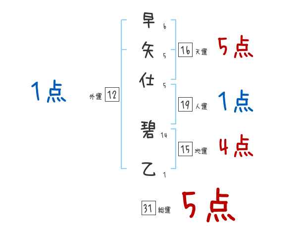 天運![]() | 早矢仕碧乙さんの天運は16画の5つ星!人望が厚く大きく発展する。逆転成功が見える。 家系が持つ宿命的な運勢を表します。祖先から受け継いだ苗字ですので自分の力が及びません。家柄を象徴します。 |