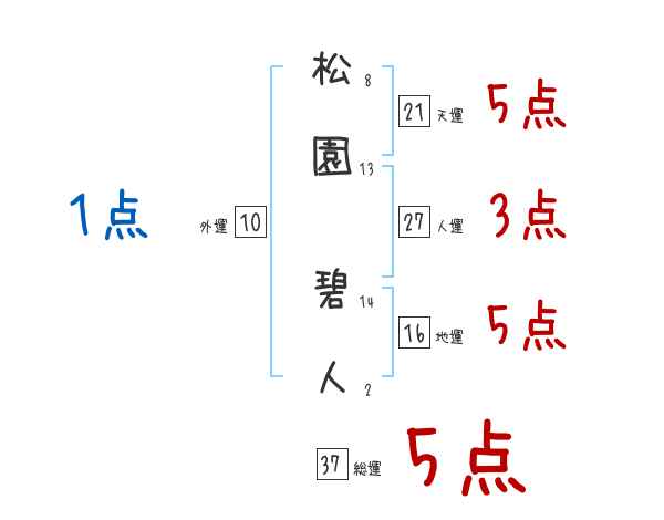 天運![]() | 松園碧人さんの天運は21画の5つ星!統率力がある。独立し成功する。名誉を手に入れる。 家系が持つ宿命的な運勢を表します。祖先から受け継いだ苗字ですので自分の力が及びません。家柄を象徴します。 |