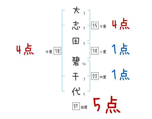 外運![]() | 大志田碧千代さんの外運は18画の4つ星!情熱的で剛気。忍耐力があり信頼される。 生活面を象徴する運勢です。外部から受ける影響力を表し、結婚運、家庭運や職場、環境への順応性を表します。 |