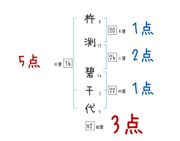 外運![]() | 杵渕碧千代さんの外運は16画の5つ星!人望が厚く大きく発展する。逆転成功が見える。 生活面を象徴する運勢です。外部から受ける影響力を表し、結婚運、家庭運や職場、環境への順応性を表します。 |