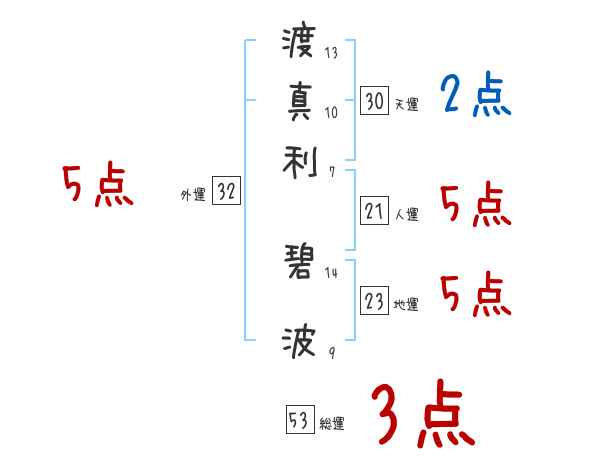 渡真利碧波さんの画数の鑑定結果