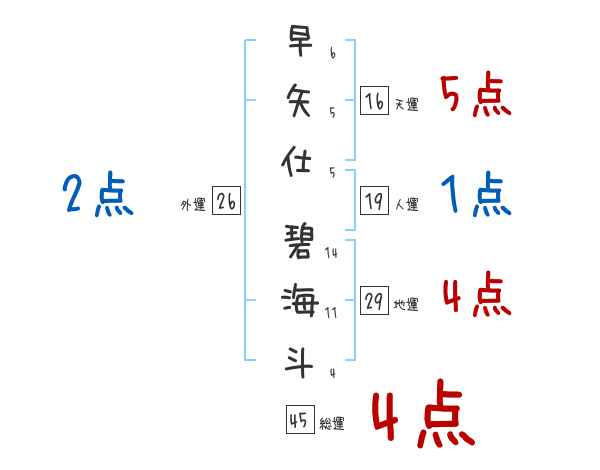 天運![]() | 早矢仕碧海斗さんの天運は16画の5つ星!人望が厚く大きく発展する。逆転成功が見える。 家系が持つ宿命的な運勢を表します。祖先から受け継いだ苗字ですので自分の力が及びません。家柄を象徴します。 |
