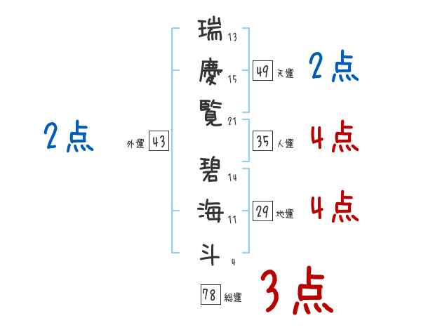 瑞慶覧碧海斗さんの画数の鑑定結果