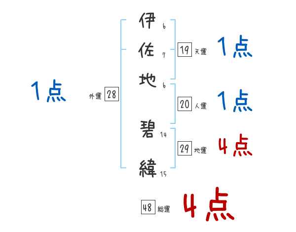 地運![]() | 伊佐地碧緯さんの地運は29画の4つ星!完全主義で才能がある。厳格な心の持ち主。 個性を表す基礎的な運勢です。性格形成や対人関係、行動力など家庭環境に影響されます。主に誕生してから20歳くらいまでの若年期の運勢を表します。 |
