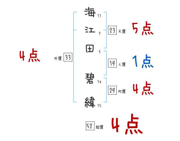 海江田碧緯さんの画数の鑑定結果
