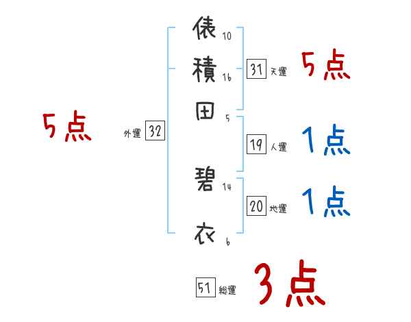 外運![]() | 俵積田碧衣さんの外運は32画の5つ星!柔軟性があり成功する。チャンスが多く金運が良い。 生活面を象徴する運勢です。外部から受ける影響力を表し、結婚運、家庭運や職場、環境への順応性を表します。 |