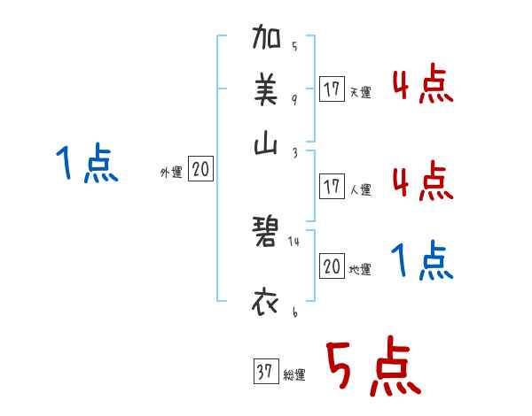 総運![]() | 加美山碧衣さんの総運は37画の5つ星!努力家で順応性に優れる。現実的な考え方ができ忠実に物事をこなす。 あなたの人生を表す1番重要な運勢です。生涯を通じて影響する総合運となり、主に50歳以降の晩年期に影響を及ぼします。 |