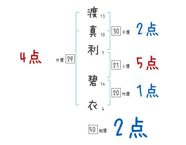 渡真利碧衣さんの画数の鑑定結果