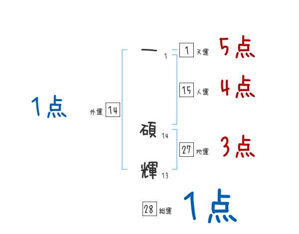 一碩輝さんの画数の鑑定結果