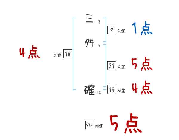 外運![]() | 三舛確さんの外運は18画の4つ星!情熱的で剛気。忍耐力があり信頼される。 生活面を象徴する運勢です。外部から受ける影響力を表し、結婚運、家庭運や職場、環境への順応性を表します。 |