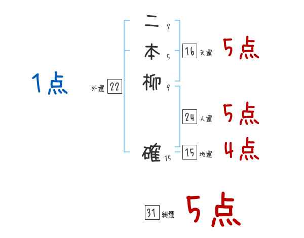 二本柳確さんの画数の鑑定結果