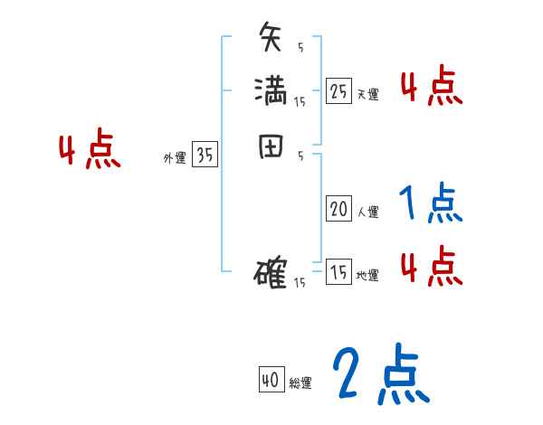 矢満田確さんの画数の鑑定結果