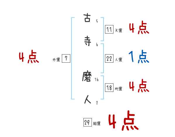 古寺磨人さんの画数の鑑定結果