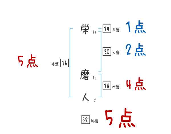 総運![]() | 栄磨人さんの総運は32画の5つ星!柔軟性があり成功する。チャンスが多く金運が良い。 あなたの人生を表す1番重要な運勢です。生涯を通じて影響する総合運となり、主に50歳以降の晩年期に影響を及ぼします。 |