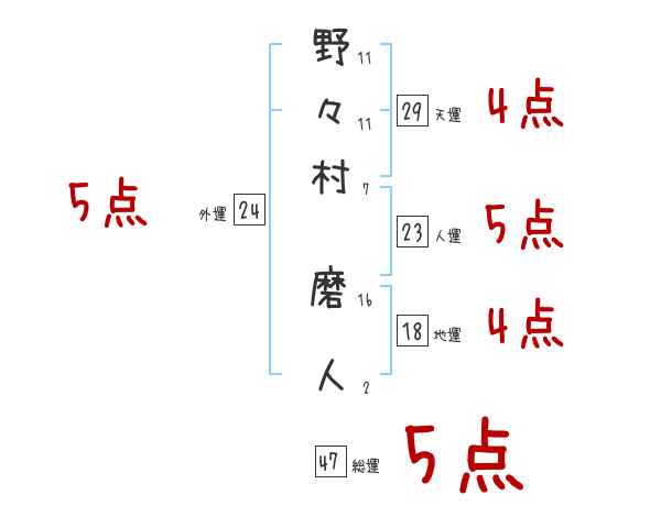 野々村磨人さんの画数の鑑定結果