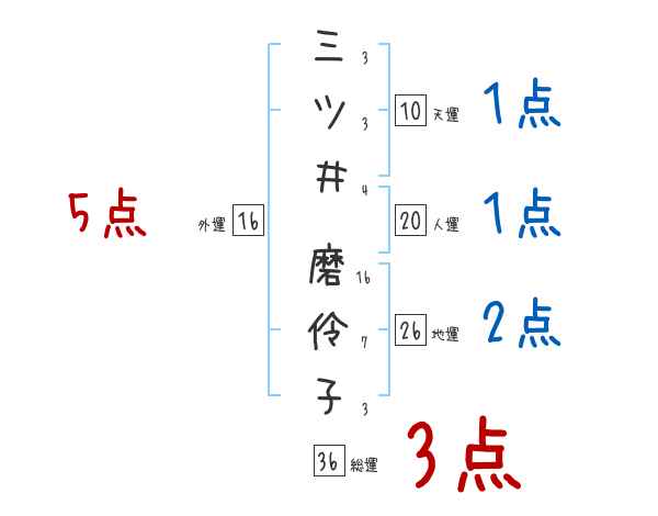 三ツ井磨伶子さんの画数の鑑定結果