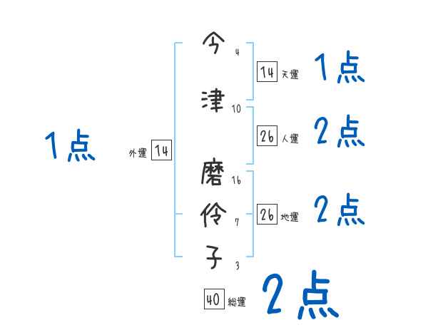 今津磨伶子さんの画数の鑑定結果
