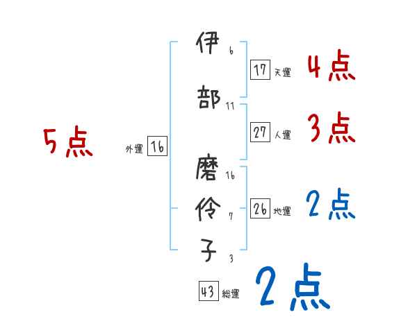 人運![]() | 伊部磨伶子さんの人運は27画の3つ星!頭脳明晰だが強情で摩擦が多い傾向。孤立に注意。 性格や才能などを表す2番目に重要な運勢です。人間関係や協調性、社会的な成功に影響します。主に20歳から50歳ぐらいまでの中年期の運勢を表します。 |