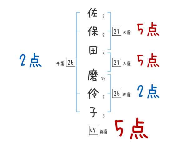 外運![]() | 佐保田磨伶子さんの外運は26画の2つ星!波瀾万丈かも。信頼できる人を大事にしましょう。 生活面を象徴する運勢です。外部から受ける影響力を表し、結婚運、家庭運や職場、環境への順応性を表します。 |