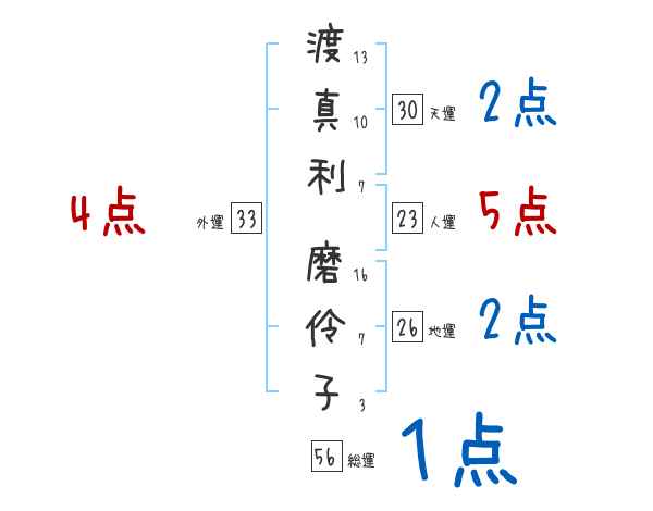 天運![]() | 渡真利磨伶子さんの天運は30画の2つ星!浮き沈みの激しさに注意しましょう。 家系が持つ宿命的な運勢を表します。祖先から受け継いだ苗字ですので自分の力が及びません。家柄を象徴します。 |