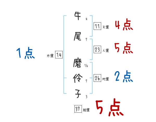 牛尾磨伶子さんの画数の鑑定結果