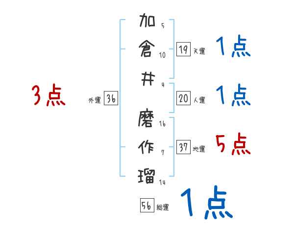 加倉井磨作瑠さんの画数の鑑定結果