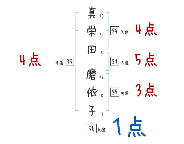 真栄田磨依子さんの画数の鑑定結果