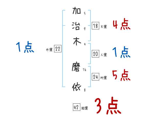 加治木磨依さんの画数の鑑定結果