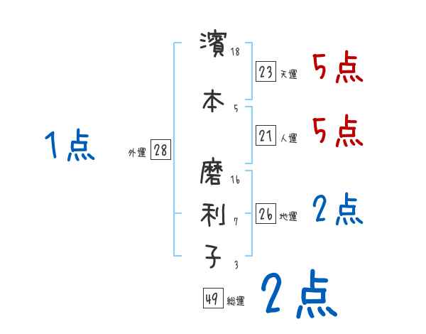 濱本磨利子さんの画数の鑑定結果