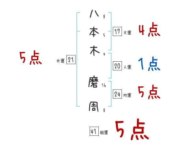 天運![]() | 八本木磨周さんの天運は17画の4つ星!積極的な行動力。地位を気づき財産を手に入れる。純粋な心と直感力。 家系が持つ宿命的な運勢を表します。祖先から受け継いだ苗字ですので自分の力が及びません。家柄を象徴します。 |