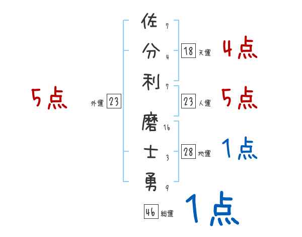 佐分利磨士勇さんの画数の鑑定結果