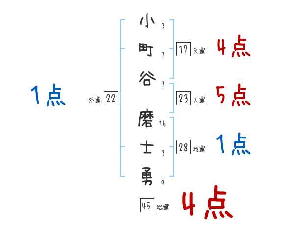小町谷磨士勇さんの総運は45画の4つ星