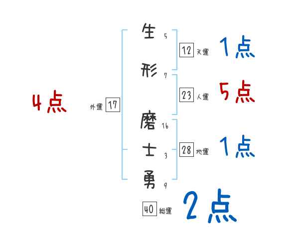 生形磨士勇さんの画数の鑑定結果