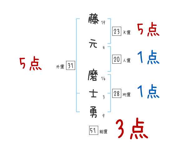 藤元磨士勇さんの画数の鑑定結果