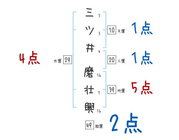 三ツ井磨壮興さんの画数の鑑定結果