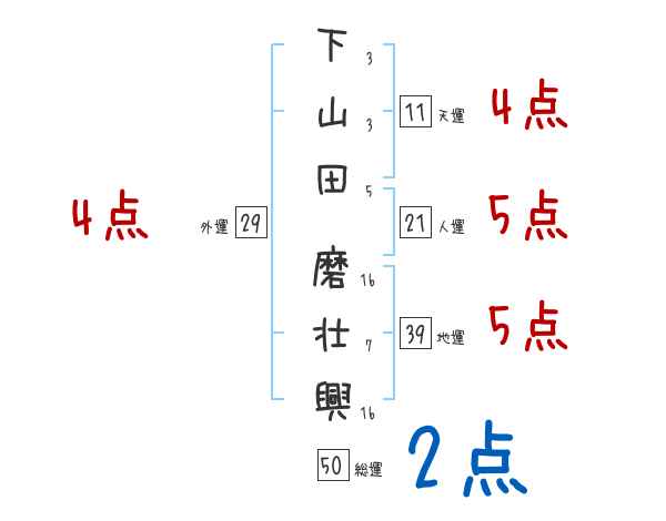 下山田磨壮興さんの画数の鑑定結果