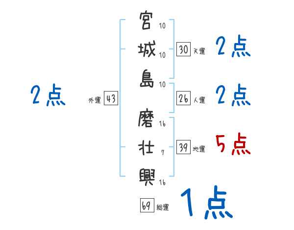 宮城島磨壮興さんの画数の鑑定結果