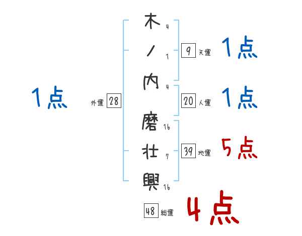 木ノ内磨壮興さんの画数の鑑定結果