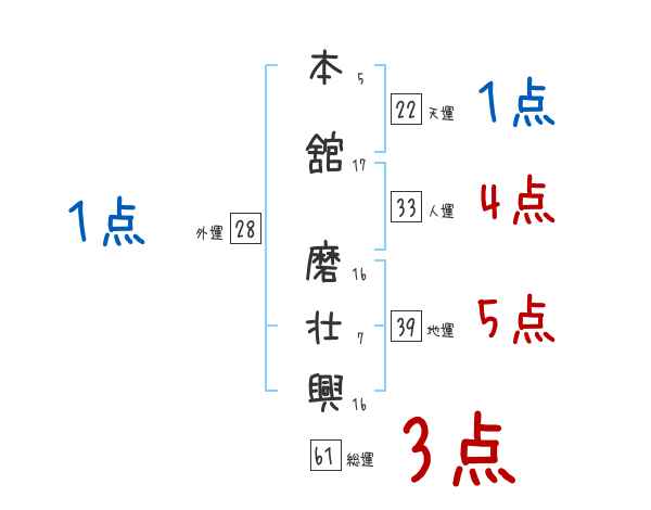 本舘磨壮興さんの画数の鑑定結果