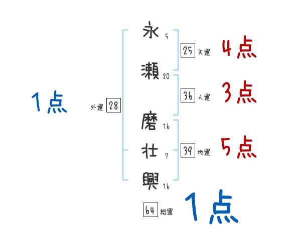 永瀬磨壮興さんの画数の鑑定結果