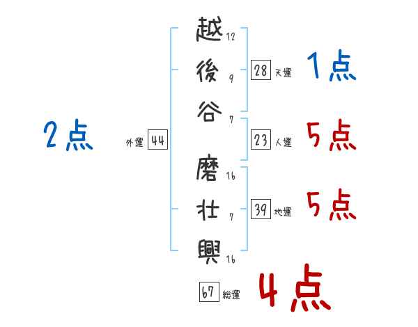 越後谷磨壮興さんの画数の鑑定結果