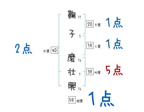 鞠子磨壮興さんの画数の鑑定結果
