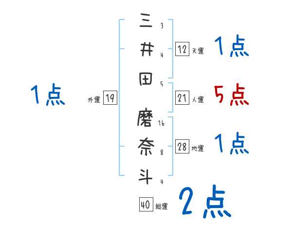 三井田磨奈斗さんの画数の鑑定結果